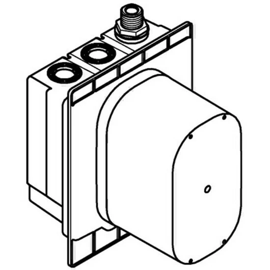 Wandeinbau, zum Anschluss an vorgemischtes Wasser oder Kaltwasser, passend zu IR-Fertigmontagesets, Vorabsperrung, Anschlussgehäuse für Netzspannung, passend für 36410, 36334, 36335, 36273, für normgerechte Wanddurchführung bei Wassereinwirkung, mit Dichtmanschette