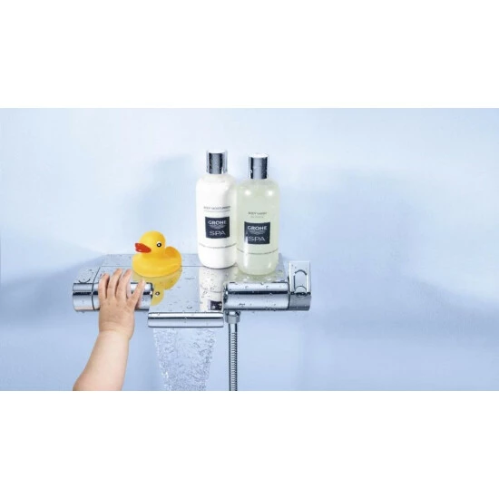 Wenn durch diese attraktive Wannenarmatur das Wasser leise in Ihre Wanne fällt und sie schnell in der gewünschten Wassertemperatur füllt, kommt Wohlfühlatmosphäre auf. Diesen funktionsstarken Thermostat mit der formschönen GROHE EasyReach Ablage für Ihre Pflegeprodukte können Sie dank GROHE CoolTouch Technologie stets bedenkenlos berühren, weil sich die Oberfläche nicht aufheizt. Mit dem ergonomisch geformten GROHE AquaDimmer Eco wechseln Sie zwischen Wasserfall-Wannenzulauf und Brause. Die SafeStop Taste schützt während des Duschens und Badens – auch Kinder – davor, versehentlich die Wassertemperatur zu heiß einzustellen. Dank der kratzfesten, pflegeleichten Chrombeschichtung werden Sie an diesem Glanzstück beim Duschen und Baden lange Freude haben, zumal Sie durch die eingebaute Wasserspartechnologie mit der Brause auch noch bis zu 50 % der wertvollen Ressource Wasser sparen können.
