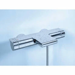 „Wandmontage, EcoJoy Wasserspar-Technologie, CoolTouch-Sicherheitsgehäuse, SafeStop Sicherheitssperre bei 38 °C, TurboStat Kompaktkartusche mit Dehnstoff-Thermoelement, integrierte Mischwasserabsperrung, Carbodur Keramik-Oberteil 1/2″“, 180°, AquaDimmer Eco mit Mehrfachfunktion: Absperrung und Mengenregulierung, Umstellung Wanne/Brause, integrierter EcoButton (Spartaste mit Sparanschlag zu Brause), XL-Wasserfall, StarLight Oberfläche, Brauseabgang unten 1/2″“, eingebaute Rückflussverhinderer, Schmutzfangsiebe, verdeckte S-Anschlüsse, eigensicher gegen Rückfließen“