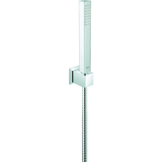 GROHE Euphoria Cube+ Stick Wandhalterset 1 Strahlart bestehend aus: Handbrause Euphoria Cube+ (27 888) Handbrausehalter (27 706) Metallbrauseschlauch 1500 mm (28 417) GROHE EcoJoy 9,5 l/min Durchflusskonstanthalter GROHE DreamSpray perfektes Strahlbild GROHE StarLight Oberfläche SpeedClean Antikalk-System Twistfree gegen Verdrehen des Brauseschlauchs chrom