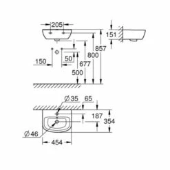 GROHE Bau Keramik Handwaschbecken 45 cm wandhängend mit 1 Hahnloch mit Überlauf 453 x 354 mm aus Sanitärkeramik alpinweiß