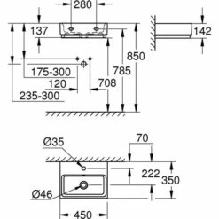 GROHE Cube Keramik Handwaschbecken 45 cm wandhängend mit 1 Hahnloch mit Überlauf 455 x 350 mm aus Sanitärkeramik PureGuard Hygieneoberfläche bestehend aus antibakterieller Glasur und reinigungsfreundlicher Oberflächenbeschichtung alpinweiß