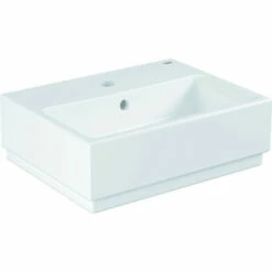 GROHE Cube Keramik Handwaschbecken 45 cm wandhängend mit 1 Hahnloch mit Überlauf 455 x 350 mm aus Sanitärkeramik PureGuard Hygieneoberfläche bestehend aus antibakterieller Glasur und reinigungsfreundlicher Oberflächenbeschichtung alpinweiß