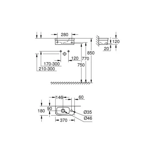 wandhängend · aus Sanitärkeramik Weitere technische Eigenschaften: · Ablagefläche rechts· Antibakterielle Behandlung Ja· Anzahl der Hahnlöcher je Waschplatz 1· Anzahl der Plätze 1· Anzahl der Waschschüsseln 1· Armaturenloch Mitte· Befestigungsart Dübelbolzen· Breite/Durchmesser 370mm· Durchmesser Ablaufloch 46mm· Geeignet für Halbsäule Nein· Geeignet für Konsolenlänge 0mm· Mit Überlauf Ja· Mittenabstand Schraubenlöcher 280mm· Montageart hängend· Pflegeleichte Oberfläche Ja· Tiefe (1) 180mm· Überlauf sichtbar Nein· Werkstoff Keramik