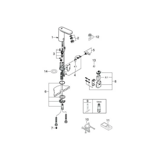 Die Grohe EurosmartInfrarot-Elektronikbatterie ist eine Waschtischarmatur mit Mischung und variabel einstellbarem Temperaturbegrenzer für die Einlochmontage mit integriertem Magnetventil. Die Armatur verfügt über ein Schnell-Montage-System, eine Mischeinrichtung mit einstellbarer Heißwassersperre und eine Sicherheitsabschaltung nach 60 Sekunden.