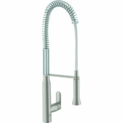 Küchenarmatur Grohe K7 supersteel 32 950 DC0 Artikelbeschreibung: Einhand-Spültischbatterie, DN 15 Einlochmontage Profibrause GROHE SilkMove© 35 mm Keramikkartusche GROHE StarLight© Chromoberflächen variabel einstellbare Mengenbegrenzung schwenkbarer Auslauf Schwenkbereich 140° Umstellung: SpeedClean Mousseur/Brausestrahl automatische Rückstellung auf Mousseur flexible Anschlussschläuche Schnell-Montage-System Eigensicher gegen Rückfließen