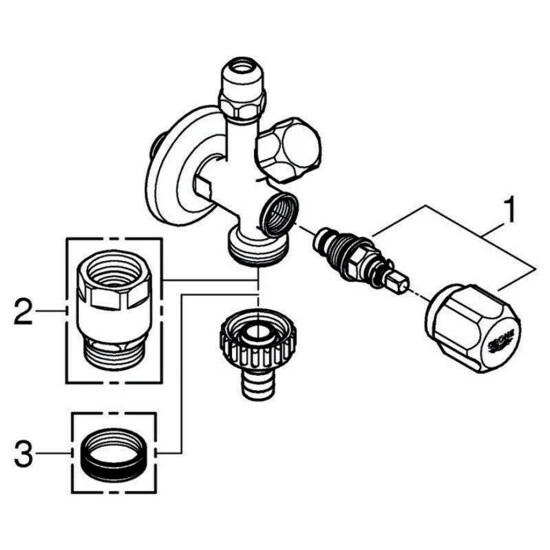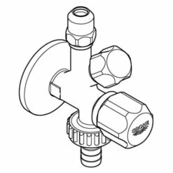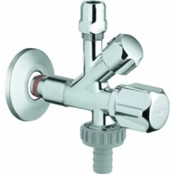 GROHE Original WAS Kombi-Eckventil DN 15 selbstdichtendes Anschlussgewinde Wandanschluss 1/2“ Abgang 3/8“ mit Längenausgleich mit Quetschverschraubung D: 10 mm Abgang 3/4“ mit Schlauchanschluss Fettkammer-Oberteil Rückflussverhinderer Typ EB langer Schubschaft ergonomische Griffe Markierung neutral Schubrosette aus Metall D: 55 mm GROHE StarLight Oberfläche kombinierbar mit Rohrbelüfter Bauform Typ HB 41 239 000 chrom