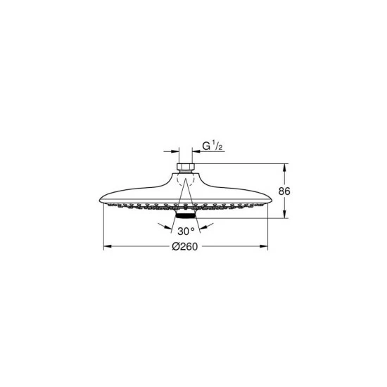 mit 3 Strahlarten Rain/SmartRain/Jet · mit Kugelgelenk · Schwenkwinkel ± 15° · Anschlussgewinde 1/2″ · DreamSpray · StarLight Oberfläche · SpeedClean Antikalk-System Weitere technische Eigenschaften: · Abmessung Gewindeanschluss in Zoll 1/2 Zoll· Anschluss Innengewinde· Antikalksystem Ja· Anzahl der Strahlmöglichkeiten 3· Ausladung (1) 0mm· Deckenmontage Ja· Durchmesser (1) 260mm· Einstellbarer Sprühstrahl Ja· Einstellbarer Sprühwinkel Ja· Grundfarbe Chrom· Länge des Brausearms 0mm· Mit Brausearm Nein· Mit Rosette Nein· Verstellbarer Kopf Nein· Volumenstromklasse A· Max. Zapfkapazität (bei 300 kPa) 12,5l/min
