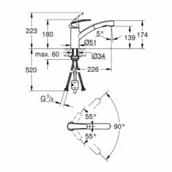 KERAMIKKARTUSCHE: Im Inneren der Küchenarmatur befindet sich eine Grohe SilkMove Keramikkartusche, die den Einhebelmischer sowohl leichtgängig als auch langlebig macht. Mithilfe der Kartusche lassen sich Wasserstrahl und Wassertemperatur präzise regeln. Der Auslauf des Wasserhahns besitzt einen praktischen Schwenkbereich von 90 Grad, ist also drehbar, ohne an die Wand oder Schränke anzustoßen.