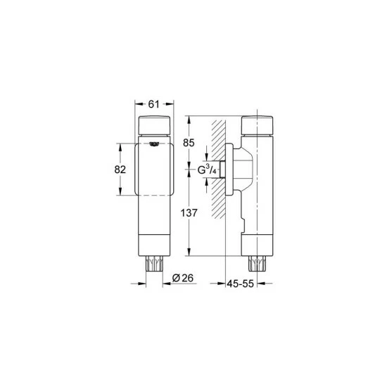 Grohe WC-Druckspüler Rondo, DN 20, chromFarbe: chromMaterial: Messing19,05 mm (3/4)Fließdruck: ab 1,2 barohne VorabsperrungGrohe StarLight OberflächeDN 20für Flach- und Tiefspül-WC’smit Spülstromregulierung6 – 9 l einstellbarmit Rosette