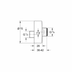GROHE S-Anschluss 1/2“ x 3/4“ Verstellbarkeit 7,5 mm Schalldämpfer Schraubrosette Durchmesser: 70 mm / Tiefe: 26 mm GROHE StarLight Oberfläche