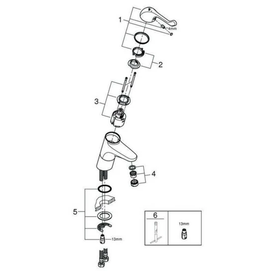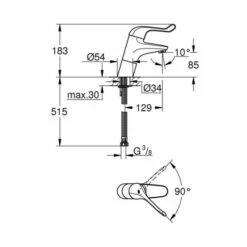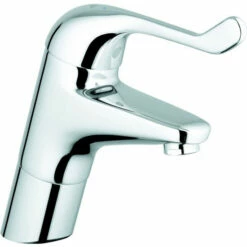 GROHE Euroeco Special Sicherheits-Mischbatterien Einhand-Sicherheitsmischbatterie 1/2“ für Waschtisch Einlochmontage glatter Körper GROHE StarLight Oberfläche GROHE EcoJoy Wasserspar-Technologie Keramikkartusche variabel einstellbare Mengenbegrenzung mit Temperaturbegrenzer Laminarstrahlregler 9 l/min. Bedienungshebel aus Metall Hebellänge 120 mm Schnell-Montage-System flexible Anschlussschläuchechrom