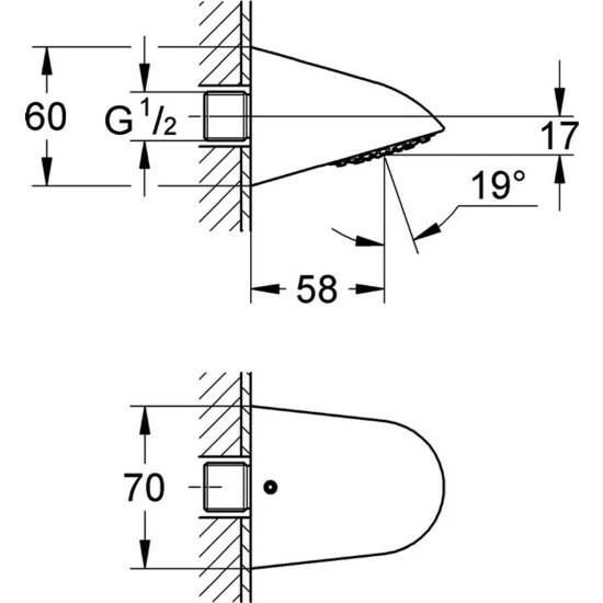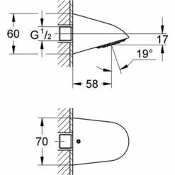 Anschlussgewinde 1/2″ · geringe Aerosolbildung · schwere geschlossene Ausführung · Suizidhemmende Bauform · diebstahlsicher · Durchflussbegrenzer 9 l/min und 12 l/min · steckbarer Anschlussstutzen für Wandanschluss · DreamSpray · SpeedClean Antikalk-System · StarL