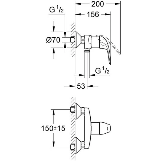 Grohe Swift Hebel Brausearmatur Chrom – Wand – Metallhebel – GROHE SilkMove® Keramikkartusche 46 mm – GROHE Starlight vibrierend, langlebige Chrom – Brauseabgang 1/2 „mit integriertem Rückschlagventil – Fittings S – Begrenzer optional Temperatur (46308)