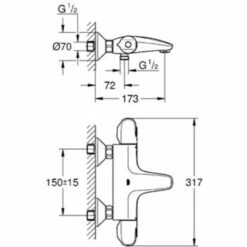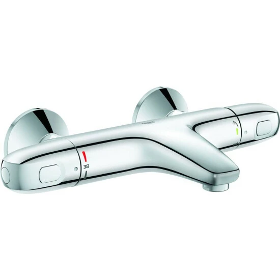Die GROHE Grotherm 1000 Thermostat-Wannenbatterie ist ausgestattet mit der GROHE StarLight® Chromoberfläche, dem GROHE CoolTouch® Sicherheitsgehäuse, dem ergonomischen Metallgriff GROHE MetalGrip, der GROHE TurboStat®Kompaktkartusche mit Dehnstoff-Thermoelement und der GROHE SafeStop® Sicherheitstemperatursperre bei 38°C. Weitere Merkmale sind die GROHE EcoJoy® Wasserspar-Technologie, die integrierte Mischwasserabsperrung, die GROHE AquaDimmer Eco mit Mehrfachfunktion (Absperrung und Mengenregulierung, Umstellung: Wanne/Brause, integrierter GROHE EcoButton) sowie der Auslauf mit Mosseur. Der Brauseabgang ist 1/2“ groß und eigensicher gegen Rückfließen. Zum weiteren Lieferumfang gehören ein Schmutzfangsieb, S-Anschlüsse sowie eine Metallrossette. Der Mindestdruck beträgt 1,0 bar.
