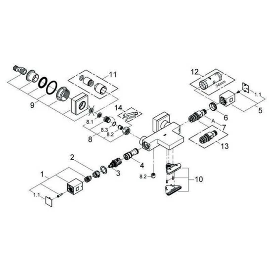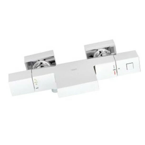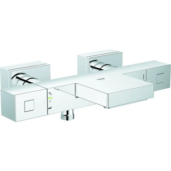 GROHE Grohtherm Cube Thermostat-Wannenbatterie, DN 15 Wandmontage GROHE StarLight Oberfläche GROHE SafeStop Sicherheitssperre bei 38 GradC GROHE SafeStop Plus optional einsetzbarer Temperaturendanschlag bei 43 GradC GROHE TurboStat Kompaktkartusche mit Dehnstoff-Thermoelement integrierte Mischwasserabsperrung GROHE AquaDimmer Eco mit Mehrfachfunktion: integrierter GROHE EcoButton (Spartaste mit Sparanschlag zur Brause) Absperrung und Mengenregulierung, Umstellung: Wanne/Brause Brauseabgang unten 1/2“ GROHE XL Wasserfall eingebaute Rückflussverhinderer, Schmutzfangsiebe Eigensicher gegen Rückfließen verdeckte S-Anschlüsse GROHE EcoJoy Wasserspar-Technologie chrom