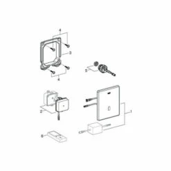 GROHE Tectron Skate Infrarot-Elektronik für Urinal mit Infrarot-Sensor für bidirektionale Kommunikation mit Trafo 100-230 V AC, 50-60 Hz, 6 V DC GROHE StarLight Oberfläche Kartusche mit Magnetventil und Schmutzfangsieb Frontplatte 116 x 144 mm Fließdruck min. 0,5 bar Betriebsdruck max. 10 bar 7 voreingestellte Programme automatische Spülung, Reinigungsmodus, Vorspülung zusätzliche Funktionen und Einstellungen mit Fernbedienung 36 407 Spülzeit einstellbar, manuell oder mit Fernbedienung Fertigmontageset für Rapido UZeichen chrom