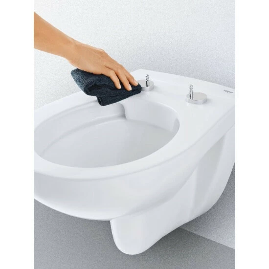 Ob Sie Ihr Badezimmer rundum erneuern oder nur einzelne Produkte austauschen möchten – das GROHE Bau Keramik wandhängende WC ist die perfekte Ergänzung für jeden Look. Das schlanke Design der Toilette spiegelt sich auch in ihrer subtilen Funktionsweise wider: Sitz und Deckel verfügen über GROHE Soft Close Technologie, sodass Sie nicht plötzlich hinunterfallen oder sich versehentlich Finger einklemmen können. Das WC ist mit Randlos-Technologie ausgestattet und aus alpinweißem Glasporzellan gefertigt, das Bakterien keine Chance gibt, zudem reinigungsfreundlich ist und eine effizientere Spülung ermöglicht. Die Toilette verfügt über einen horizontalen Ablauf und eine Spülmenge von 6/3 Litern. GROHE Keramiken – zeitloses Design und Vielseitigkeit für jedes Badezimmer, praktische Funktionen und modernes Profil für Ihren Alltag.Farbe: alpinweissMaterial: SanitärkeramikMaße: 53,1 x 30,4 x 42 cmAbgang: waagerechtMontage: wandhängendSpülrand: spülrandlosForm: ovalInnenform: TiefspülerSpülmenge: