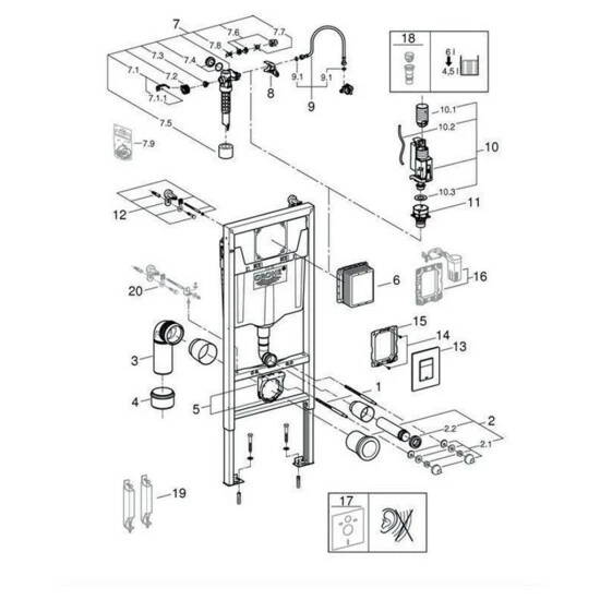 mit kleiner Revisionsöffnung, 1,13 m Bauhöhe, für Vorwand- oder Ständerwandmontage, Stahlrahmen, pulverbeschichtet, selbsttragend, für Trockenverkleidung, komplett vormontiert, fixierte Objektanschlüsse, für Einzel- oder Schienenmontage, mit Schnellverstellung und Höhensicherung, Befestigungsmaterial: 2 WC-Haltebolzen, Keramikbefestigung, Schraubenabstand 180/230 mm, PP-Ablaufbogen DN 80, tiefenverstellbar, Reduzierstück DN 80/100, Zu- und Ablaufgarnitur, Spülkasten GD 2, 6-9 l, pneumatisches Ablaufventil mit drei Funktionen: 2-Mengen oder Start/Stopp oder nicht unterbrechbar, Wasseranschluss von links/rechts/hinten, schwitzwasserisoliert, Wasseranschluss DN 15 mit integriertem Eckventil und werkzeugloser Schlauchverschraubung, werkzeuglos montierbarer Revisionsschlauch mit Rohbauschutz, vertikal oder horizontal einsetzbar, mit Zubehör für Vorwandmontage, mit Abdeckplatte Skate Cosmopolitan, für 2-Mengen- und Start & Stopp-Betätigung, senkrechte und waagerechte Montage, 156 x 197 mm, chrom, aus ABS, StarLight Oberfläche