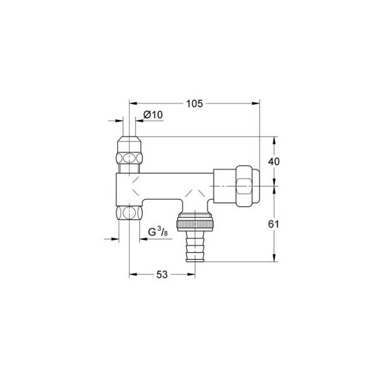 Montage auf Eckventil · Achsmaß 60 mm · Fettkammer-Oberteil 3/8“ für den absperrbaren Schlauchanschluss · Rückflussverhinderer Typ EB · eigensicher gegen Rückfließen · StarLight Oberfläche · kombinierbar mit Rohrbelüfter Bauform Typ HB (41239000) Weitere technische Eigenschaften: · Anschluss Vorlauf Innengewinde· Anschlussmaß Zufuhr 3/8 Zoll· Ausführung Einbauabsperrventil Aufbauteil· Bedienung Griff· Grundfarbe Chrom· Material Hahn Messing· Mit Abdeckrosette Nein· Schließmechanismus Oberteil keramisch