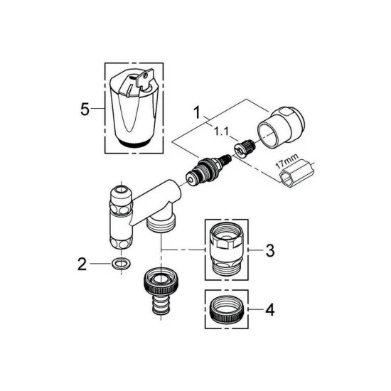 GROHE Original WAS Ventil ‚Eckfix‘, DN 10 Montage auf Eckventil Achsmaß 60 mm Fettkammer-Oberteil 3/8“ für den absperrbaren Schlauchanschluss Rückflussverhinderer Typ EB Eigensicher gegen Rückfließen GROHE StarLight Oberfläche kombinierbar mit Rohrbelüfter Bauform Typ HB 41 239 000 chrom