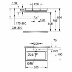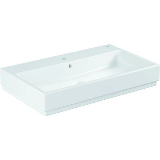 GROHE Cube Keramik Waschtisch 80 cm wandhängend mit 1 Hahnloch, 2 weitere vorgestochen mit Überlauf 800 x 490 mm aus Sanitärkeramik PureGuard Hygieneoberfläche bestehend aus antibakterieller Glasur und reinigungsfreundlicher Oberflächenbeschichtung alpinweiß