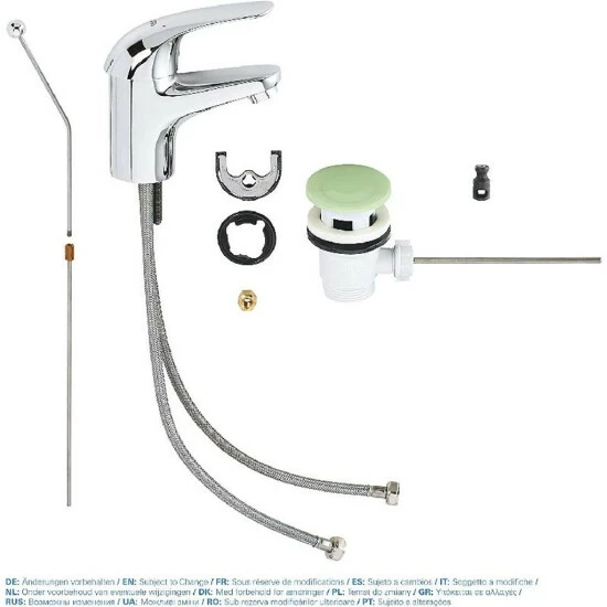 – Lieferumfang: Waschtischarmatur, Zugstange, Ablaufstopfen, Befestigungsmaterial, Bedienungsanleitung