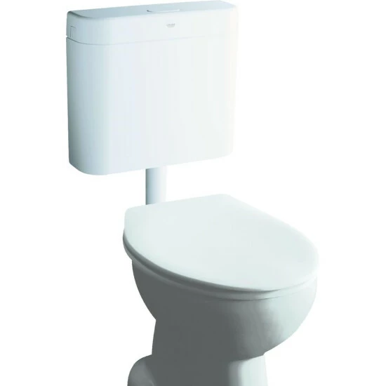 GROHE Spülkasten für WC 6-9l einstellbar Aufputz Spülung unterbrechbar Servobetätigung tiefhängend aus ABS Armaturengruppe I schwitzwasservollisoliert Eckventil DN 15 Kupferrohr Montageschablone Spülrohrbogen WC-Innenverbinderalpinweiß