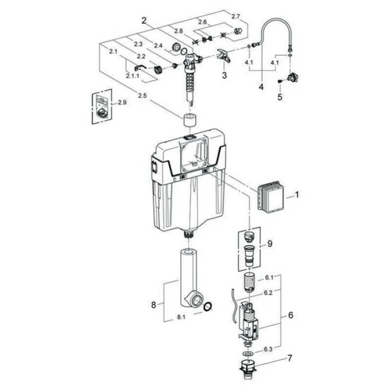 werkseitige Einstellung 6 l und 3 l, mit kleiner Revisionsöffnung, pneumatisches Ablaufventil mit zwei Funktionen: 2-Mengen- oder Start und Stop, Wasseranschluss von links/rechts/hinten oder oben, schwitzwasserisoliert, Wasseranschluss DN 15 mit integriertem Eckventil und werkzeugloser Schlauchverschraubung, werkzeuglos montierbarer Revisionsschacht mit Rohbauschutz, vertikal oder horizontal einsetzbar, Spülrohr mit Schwitzwasserisolierung, Befestigungslaschen, EcoJoy Wasserspar-Technologie, ohne Abdeckplatte/Betätigung