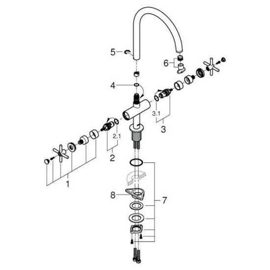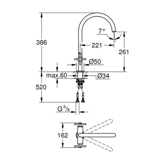 GROHE Atrio Zweigriff-Spültischbatterie, DN15 C-Auslauf Einlochmontage GROHE StarLight Oberfläche Keramik-Oberteile 1/2“, 90 Grad Schwenkbereich wählbar: 0 Grad / 150 Grad / 360 Grad flexible Anschlussschläuche Schnell-Montage-System Auslauf mit Mousseur supersteel